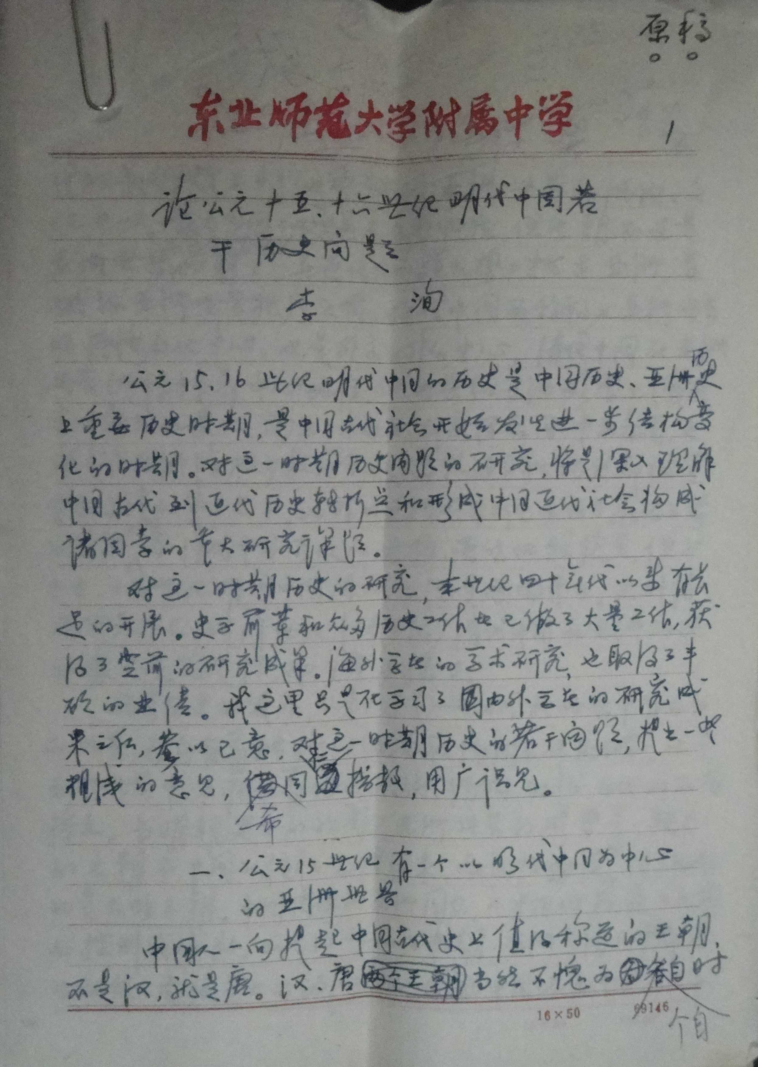 次及先生史学研究之学术特色。先生毕生以研究明清史为职志,无论科研还是教学都强调“通史感”或“全史感”。先生认为中华文明五千年传承不息,从没中断。帝制中国的政制、思想、经济、赋役、文化自有其产生、发展、演变、传承之内在逻辑和社会背景资源。研究魏晋不问秦汉,研究明清不问唐宋,楚河汉界,泾渭分明,人为切割,使断代史研究既不瞻前也不顾后,缺少时空观念,陷入“枯槐聚蚁”“秋水鸣蛙”之窘境。先生强调治断代史必须要有“通史感”或“全史感”,切忌碎片化,要将明清史置于中国历史长时段总体历程中去考察研断,厘清具体历史问题发展演进的历史脉络,文章便厚重,更具学术气象,结论自然会更加逼近历史真实。受先生“通史感”观念启迪,我在培养博士生时,开设“中国赋役制度发展演变史”“传统儒学及其流变”“帝制时代专制政体的发展演变及其历史功罪”等专题讲座,效果很好,减少了初学者张口下笔常出的舛错。先生研治明清史,还强调不可囿于中国历史和地理的范围,要“把明清史的研究放入世界的范围”,先生称之为“全球意境”或“全球历史观”。何为“全球意境”或“全球历史观”?在先生看来,中西方历史发展演进各有内在逻辑,早期基本独立发展,交互影响相对较少。自西汉以降,伴随陆路和海上丝绸之路的开通,中西方经济文化交往频密,相互影响日渐加深。特别是公元15世纪末到16世纪初大航海时代的到来,全球化的序幕徐徐拉开,世界文明进入了一个新时代。16世纪至18世纪多个率先发展的欧洲国家通过海外掠夺和鼓励发展经济贸易,经济实力空前强大起来,通过改良和革命手段,使王权落地,建立起议会民主政体,开启了全球扩张。西方早期殖民势力、商人海盗、耶稣会士来到亚洲、来到中国。这三类西方人物,或为海外殖民,或为掠夺别国财富,决非文明使者,就连外表相对温和并带来西方部分先进科学技术的耶稣会士也是要“矢志上帝的光荣”,以基督教文明取代儒教文明。16世纪至18世纪的明清时代,不可避免地被卷入这波历史潮流,中国正是在这一历史阶段由原来领先西方,开始逐渐沉沦,直至被超车,到19世纪主权和领土完整都难以自保。先生的《明代火器的发展与封建军事制度的关系》一文,就是从“全球意境”的观念出发,考察西洋火器传入中国,装备部队,引发明代军制多种变化范例。《公元十六世纪的中国海盗》更能体现先生研究明清史的“全球历史观”意识。先生指出,16世纪中国海盗,亦商亦盗,其产生有国内流民运动和禁海政策的背景,更与西方势力扩张到亚洲有关。中国海盗犯禁出海,屡剿不绝,与其卷入马尼拉中西、巴达维亚中荷、果阿中葡、长崎中日贸易,获得国内急需的白银直接关联。先生常说,“全球意境”能为考察研制明清历史问题增加一个视角。先生研治明清史重视宏观叙事,理论探索,是其又一学术特色。先生对明代流民问题、明清资本主义萌芽问题、清前期历史地位问题的探讨,均着眼这一时期重大核心问题,进行理论解说,言其大旨,不落繁琐考据俗套。先生晚年,提出帝制中国晚期“后封建制”形态说,并将明清两朝500年历史的16至18世纪200余年的历史划为独立的历史单元,命名为“中国明清时代”,探索16至18世纪的中国道路,是一次重大的理论构建尝试。